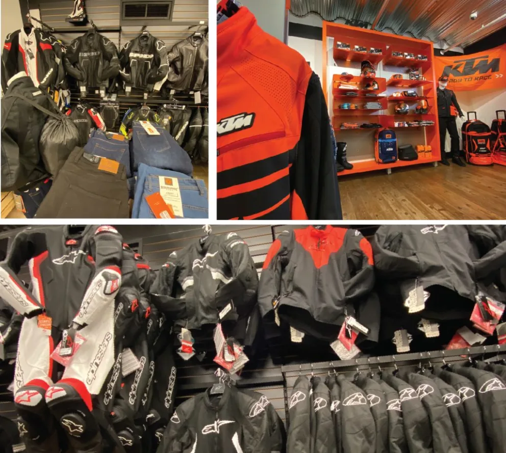 Motos Illimitées Terrebonne vous invite à venir visiter sa boutique située au 2e étage, afin de vous équipe de la tête au pied pour la saison estivale. Retrouvez tout ce dont vous avez besoin pour être en sécurité au guidon de votre motocyclette, motoneige, VTT, scooter, side-by-side et + encore. Si vous désirez jeter un coup d'oeil à notre collection hiver, c'est par ici.