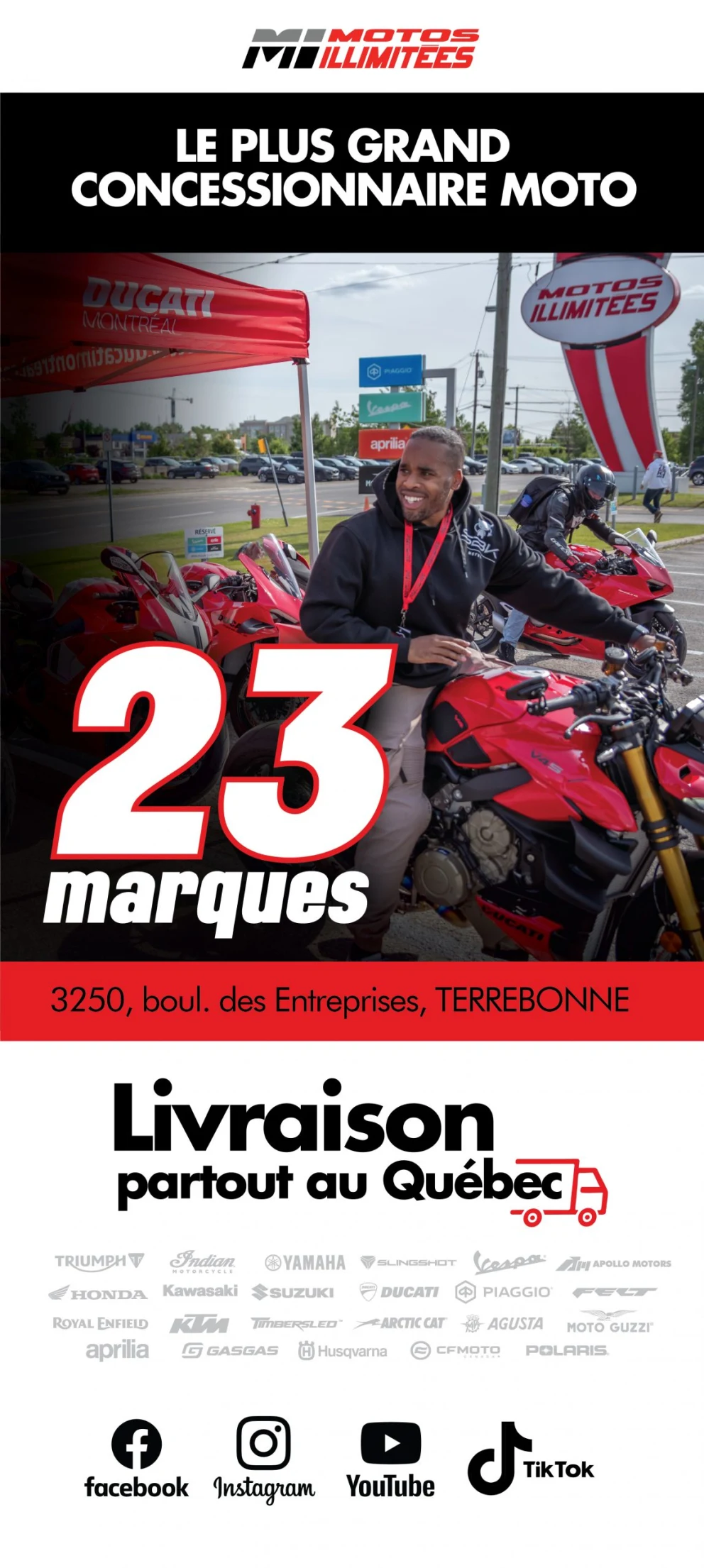 Quand vient le temps de magasiner une moto, un VTT ou un véhicule de loisirs, un seul arrêt suffit : Motos Illimitées Terrebonne. Avec 23 marques réunies sous un même toit, nous sommes la destination par excellence dans le Grand Montréal pour comparer, choisir et repartir avec le véhicule qui vous convient le mieux.