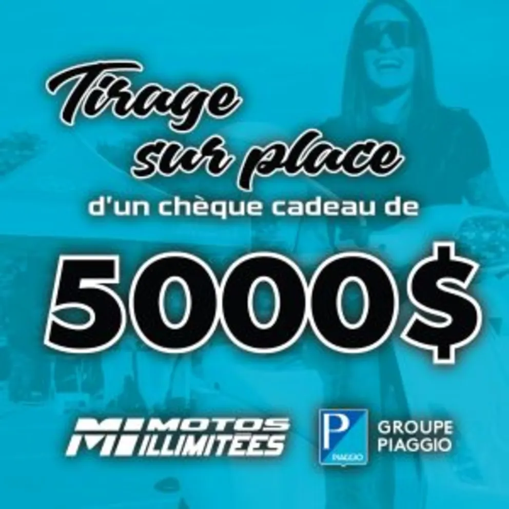 Tirage sur place d'un chèque-cadeau Piaggio/Motos Illimitées de 5000$